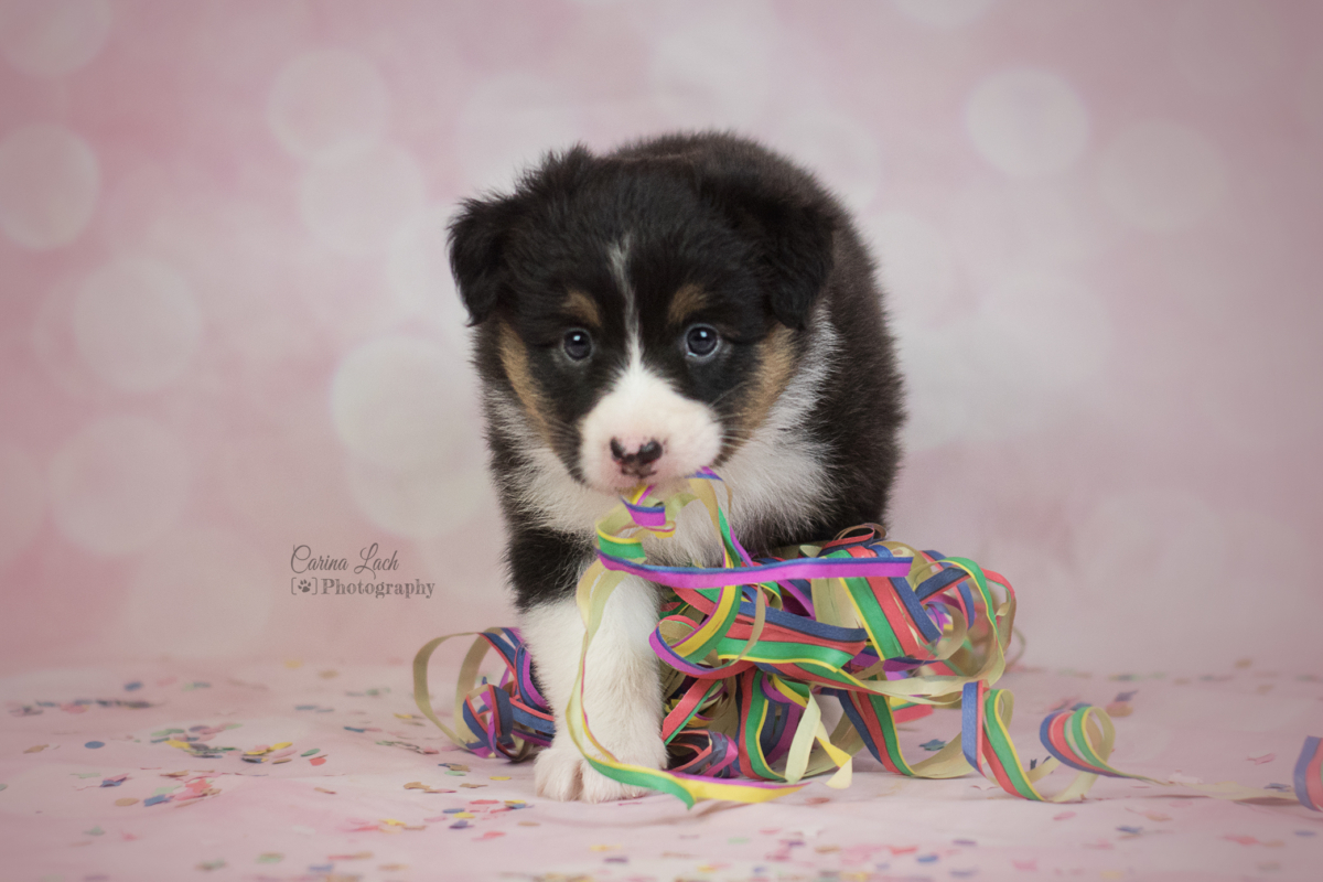 Am 16. Januar 2023 ist unser B-Wurf aus Ty und Quinn gelandet! Quinn war wieder flott unterwegs und hat für die gesamte Geburt nur 2 Stunden gebracht. Wir haben 5 Hündinnen (4 x Black tri + 1 x Black bi) und einen Rüden (Black tri). Eine weitere kleine Hündin hat es leider nicht geschafft.