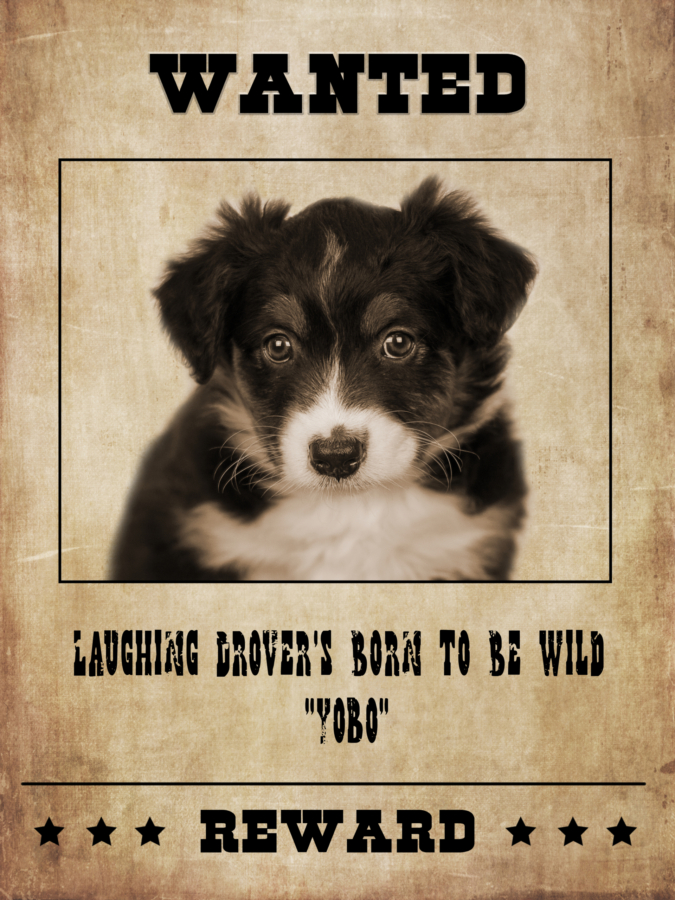 Laughing Drover's Born To Be Wild "Yobo" Yobo war mal Bonnie, von dem bekannten Gangster-Pärchen. Yobo weiß, was sie will und macht das dann auch 😀 Sie hat ihren eigenen Instagram-Account Black c/w Hündin Hobbies: Basistraining, Tricksen, Bürohund |